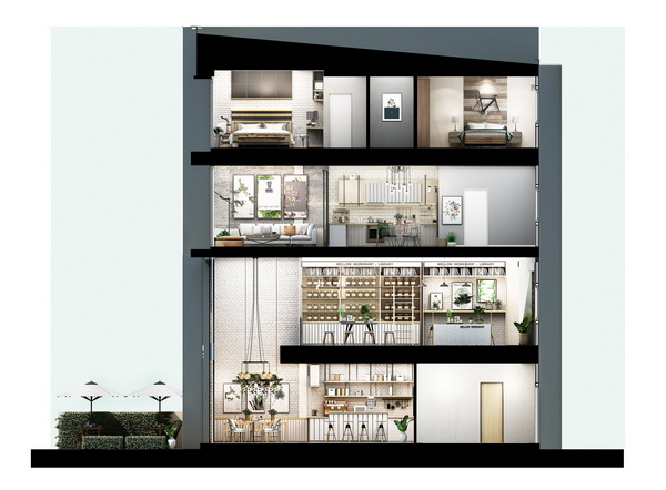 พื้นที่ใช้ชีวิต 189 ตารางเมตร หน้ากว้าง 4.5 เมตร 2 ชั้นสำหรับพื้นที่ธุรกิจ 2 ชั้นสำหรับพื้นที่การใช้ชีวิต