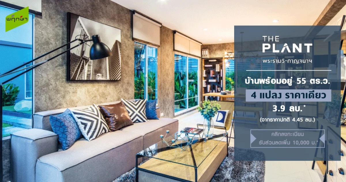 บริษัท พฤกษา เรียลเอสเตท จำกัด (มหาชน) จัดโปรโมชั่นพิเศษให้กับบ้านเดี่ยว โครงการ "เดอะ แพลนท์ พระราม 5 - กาญจนาภิเษก (The Plant Rama 5 - Kanjanaphisek)" LAST DEAL ราคาพิเศษปิดโครงการ 4 แปลงพิเศษ ราคาเดียว 3.99 ล้านบาท* ผู้ที่สนใจสามารถลงทะเบียนรับสิทธิพิเศษก่อนใคร พร้อมรับส่วนลดเพิ่ม 10,000 บาท*