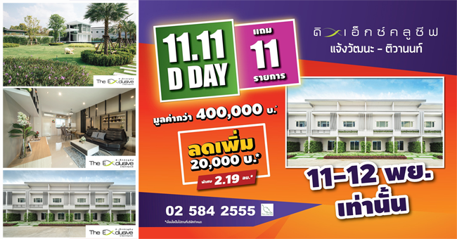 11.11 D-DAY ดิเอ็กซ์คลูชีฟ แจ้งวัฒนะ-ติวานนท์ กระหน่ำโปรฯแรงเว่อร์!! จัดเต็มของแถม 11 รายการ*