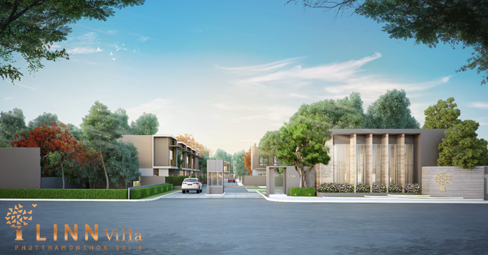 ลินน์ วิลล่า พุทธมณฑล สาย 4 (LINN VILLA PHUTTHAMONTHON SAI 4) "บ้าน" อิสระ แนวคิดใหม่ในรูปแบบ modern-luxury ที่ถูกออกแบบภายใต้แนวคิดให้มีพื้นที่ใช้สอยในแต่ละยูนิต สร้างความรู้สึกสไตล์บ้านเดี่ยว เพิ่มความเป็นส่วนตัวให้คุณได้สร้างสรร "พื้นที่ของคุณ" ให้เข้ากับลักษณะการใช้ชีวิต และตอบสนองทุกความต้องการของครอบครัวยุคใหม่ ให้คุณได้พบกับสังคมส่วนตัวอีกระดับ เพียง 41 ครอบครัว กับบ้านอิสระดีไซน์ให้ผนังไม่ติดกัน 3 ห้องนอน 2 ห้องน้ำ พื้นที่ใช้สอย 120 ตร.ม. หน้ากว้างที่ดินถึง 7.7 - 9.7 เมตร พร้อมสิ่งอำนวยความสะดวกครบครัน อาทิ คลับเฮ้าส์ ฟิตเนสและพื้นที่ส่วนกลาง แวดล้อมไปด้วยพื้นที่สีเขียวให้ความรู้สึกใกล้ชิดธรรมชาติ มีเจ้าหน้าที่รักษาความปลอดภัยตลอด 24 ชั่วโมง และกล้องวงจรปิด (CCTV)