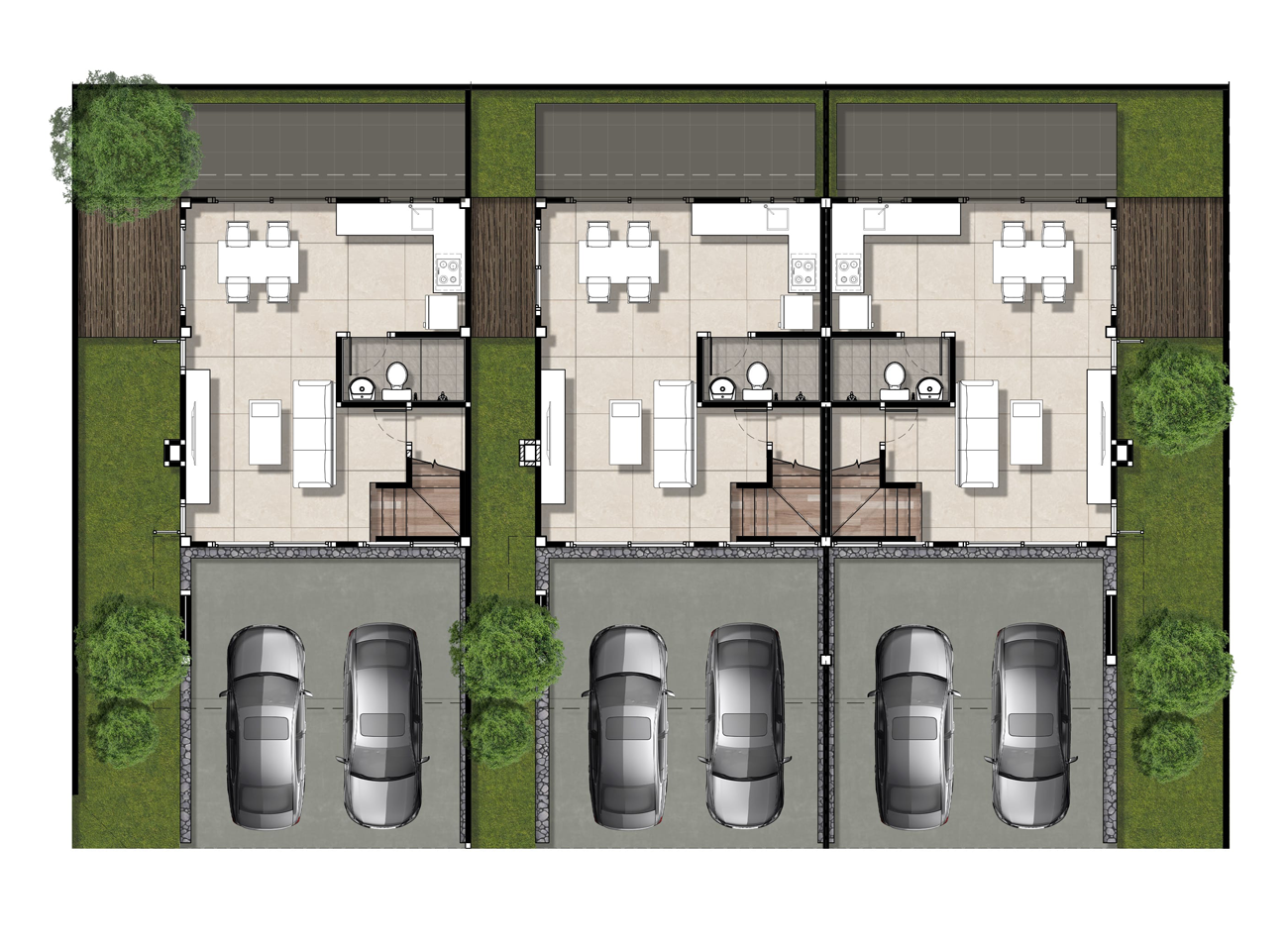 บ้านอิสระดีไซน์ให้ผนังไม่ติดกัน 3 ห้องนอน 2 ห้องน้ำ พื้นที่ใช้สอย 120 ตร.ม. หน้ากว้างที่ดินถึง 7.7 - 9.7 เมตร เพิ่มประโยชน์ใช้สอย คงความเป็นส่วนตัวให้ความรู้สึกสไตล์บ้านเดี่ยว ตอบสนองการอยู่อาศัยสำหรับครอบครัวยุคใหม่