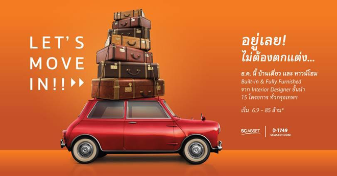 บริษัท เอสซี แอสเสท คอร์ปอเรชั่น จำกัด (มหาชน) จัดแคมเปญพิเศษส่งท้ายปี LET'S MOVE IN!! อยู่เลย! ไม่ต้องตกแต่ง พบกับบ้านเดี่ยวและทาวน์โฮมกว่า 15 โครงการพร้อมเข้าอยู่ Built-in & Fully Furnished จาก Interior Designer ชั้นนำ ในราคาสุดพิเศษ พร้อมรับส่วนลดสูงสุด 6 ล้านบาท* ราคาเริ่มต้น 6.9 - 85 ล้าน ตั้งแต่วันนี้ - 29 ธ.ค.60 ณ สำนักงานขายโครงการ ทั่วกรุงเทพฯ