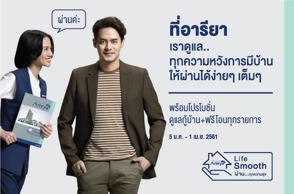 โปรโมชั่น: Life Smooth ผ่าน...ทุกความสุข ที่อารียา เราดูแลทุกความหวังการมีบ้านให้ผ่านได้ง่ายๆ เต็มๆ พร้อมโปรโมชั่นดูแลกู้บ้าน + ฟรีโอนทุกรายการ 5 มกราคม - 1 เมษายน 2561