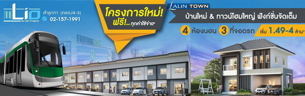 โปรโมชั่น: "ลลิล ทาวน์ ไลโอ ลำลูกกา คลอง 4-5" โครงการใหม่!! ใจกลางลำลูกกา ตั้งอยู่บนทำเลแห่งอนาคต ใกล้ทางด่วนมาก 4 นาที ถึงรถไฟฟ้าสายสีเขียว พร้อมด้วยสวนส่วนกลางขนาดใหญ่ คลับเฮาส์หรู และสระว่ายน้ำสุดโมเดิร์น - บ้านใหม่หน้าสวนติดถนนเมน เริ่ม 2.8 - 4 ล้าน* - ทาวน์โฮมระดับพรีเมี่ยม 2 จอดรถส่วนตัว เริ่ม 1.49 - 2 ล้าน ลงทะเบียนวันนี้รับสิทธิ์พิเศษ ฟรี!! ทุกค่าใช้จ่ายวันโอน+แอร์*