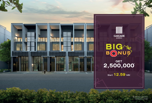 โปรโมชั่น: คาสเคด บางนา โฮมออฟฟิศ 4 ชั้น สไตล์โมเดิร์น กับโปรโมชั่น BIG BONUS รับส่วนลดสูงสุด 2.5 ล้านบาท* และฟรีส่วนกลาง 2 ปี เมื่อลงทะเบียน ราคาเริ่มต้น 12.59 ล้านบาท*