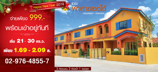 โปรโมชั่น: เดอะ พาลาซเซตโต้ คลองหลวง - คลองสาม ทาวน์โฮม 2 ชั้น 3 ห้องนอน 2 ห้องน้ำ จ่ายเพียง 999.- พร้อมเข้าอยู่ทันที เริ่ม 1.69 - 2.09 ล้านบาท