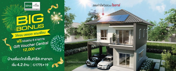 โปรโมชั่น: เสนาวิลล์ บรมราชชนนีสาย 5 (ศาลายา) Big Bonus ให้ครบ ลดเยอะ แถมเพียบ ฟรี! ของแถม 6 รายการ Gift Voucher Central 12,000 บาท เริ่ม 4.2 ล้านบาท