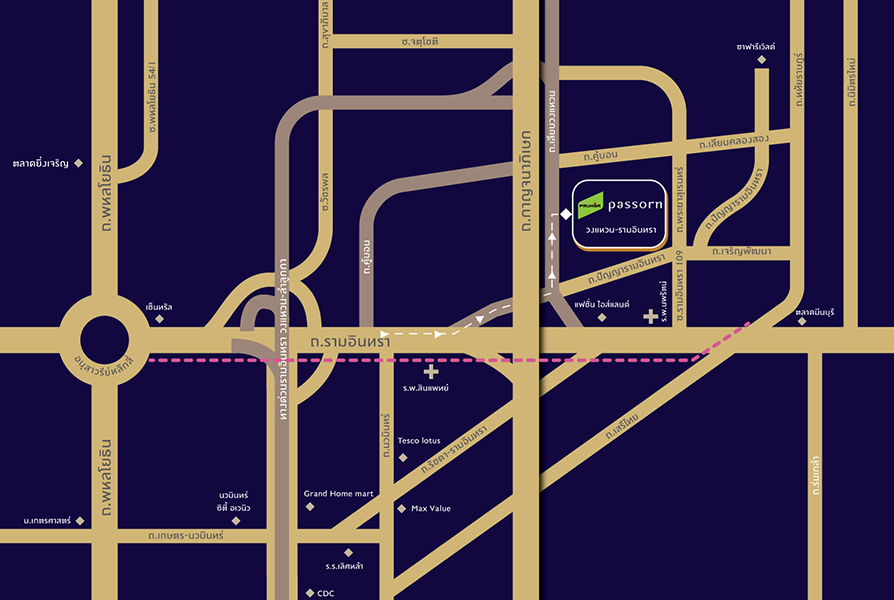 ทำเลศักยภาพ ติดถนนเลียบวงแหวนตะวันออก ใกล้แฟชั่นไอส์แลนด์และรถไฟฟ้าสถานีวงแหวนตะวันออก เพียง 2 km. สะดวกรวดเร็วทุกการเดินทางด้วยหลายจุดเชื่อมต่อสู่ถนนสายหลักทั้ง ทางด่วนรามอินทรา-อาจณรงค์, รามอินทรา, พระราม 9 วงแหวนตะวันออก, เกษตร-นวมินทร์, ลาดพร้าว, เสรีไทย