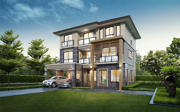 "ภัสสร วงแหวน - รามอินทรา (Passorn Wongwaen - Ramintra)" บ้านเดี่ยวสไตล์โมเดิร์น 3 ชั้น แบบบ้าน 2 แบบ เนื้อที่บ้านเริ่มต้น 55 ตร.ว. พื้นที่ใช้สอยตั้งแต่ 260 - 274 ตร.ม. ฟังก์ชั่นพร้อมรองรับอนาคต มีห้องนอนมากถึง 5 ห้องนอน พร้อมห้องน้ำในตัวทุกห้องนอน และ Double Volume Living ห้องรับแขกเพดานสูง 2 ชั้น โปร่งโล่ง รองรับช่วงเวลาพักผ่อน