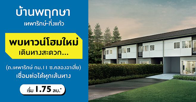 บ้านพฤกษา เทพารักษ์ - กิ่งแก้ว ทาวน์โฮมใหม่จากพฤกษา เปิดลงทะเบียนรับสิทธิพิเศษ เริ่ม 1.75 ล้านบาท