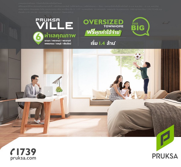 สอบถามรายละเอียดเพิ่มเติมได้ที่ โทร.1739 เว็บไซต์ www.pruksa.com