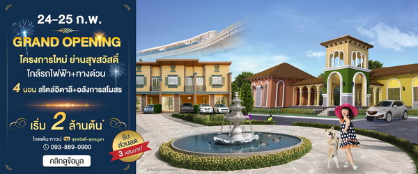 โปรโมชั่น: โกลเด้น ทาวน์ ๓ สุขสวัสดิ์-พุทธบูชา ห้ามพลาด!! 24-25 ก.พ. นี้ GRAND OPENING จอง 5,000 รับส่วนเพิ่มสูงสุด 3 แสนบาท*!!! ทาวน์โฮมโครงการใหม่ ย่านสุขสวัสดิ์ ใกล้รถไฟฟ้า+ทางด่วน 4 ห้องนอน 3 ห้องน้ำ สไตล์อิตาลี อลังการสโมสร+โรงหนังส่วนตัว เริ่ม 2 ล้านต้น*