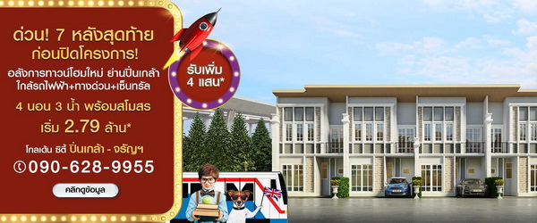 โปรโมชั่น: โกลเด้น ซิตี้ ปิ่นเกล้า-จรัญสนิทวงศ์ 7 หลังสุดท้าย! ก่อนปิดโครงการ!!! รับเพิ่ม 4 แสน*! อลังการทาวน์โฮมใหม่ ย่านปิ่นเกล้า ใกล้รถไฟฟ้า+ทางด่วน+เซ็นทรัล มาพร้อมฟังก์ชัน 4 ห้องนอน 3 ห้องน้ำ พร้อมสโมสร พิเศษ! ห้องพระ+ครัวไทย เริ่ม 2.79 ล้าน*