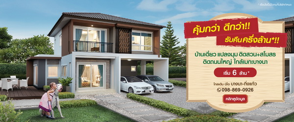 โปรโมชั่น: โครงการ โกลเด้น นีโอ บางนา-กิ่งแก้ว คุ้มกว่า? ดีกว่า! มีที่นี้ที่เดียว!!! จองทันที รับคืน ครึ่งล้าน*! บ้านเดี่ยวพร้อมอยู่ 4 ห้องนอน ทำเลดีที่สุด แปลงมุม ติดสวน+สโมสร บนทำเลศักยภาพ ติดถนนใหญ่ ใกล้เมกะ+สุวรรณภูมิ เริ่มต้นเพียง 6 ล้าน*