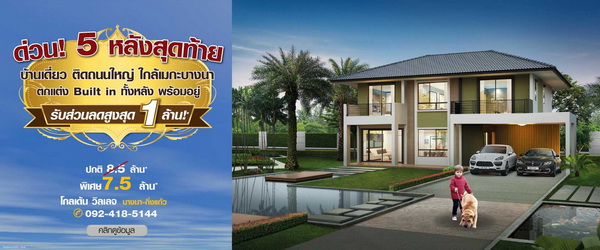 โปรโมชั่น: โกลเด้น วิลเลจ บางนา-กิ่งแก้ว (บ้านเดี่ยว) ด่วน!! 5 หลังสุดท้าย จองเลย! รับส่วนลดสูงสุด 1 ล้าน* กับบ้านเดี่ยว ติดถนนใหญ่ ใกล้เมกะบางนา 4 ห้องนอน ตกแต่ง Built in ทั้งหลัง หิ้วกระเป๋าเข้าอยู่เลย! พิเศษ... 7.5 ล้าน* เท่านั้น! มาก่อนมีสิทธิ์ก่อน