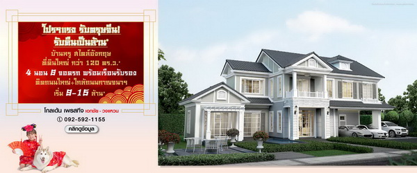 โปรโมชั่น: โกลเด้น เพรสทีจ เอกชัย-วงแหวน โปรฯแรง!! รับตรุษจีน จองเลย... รับคืนเป็นล้าน*!!! กับบ้านหรู สไตล์อังกฤษ บนที่ดินใหญ่กว่า 120 ตร.ว มาพร้อมฟังก์ชัน 4 ห้องนอน 6 ที่จอดรถ พร้อมเรือนรับรอง อลังการสโมสรและสวนธรรมชาติรอบโครงการ บนำเลศักยภาพติดถนนใหญ่ ใกล้ถนนกาญจนา เริ่ม 9-15 ล้าน*