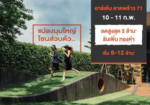 โปรโมชั่น: อาร์เด้น ลาดพร้าว 71 ลดสูงสุด 2 ล้านบาท* รับเพิ่มทองคำ เริ่ม 8 - 12 ล้านบาท* 10 - 11 กุมภาพันธ์ 2561 นี้