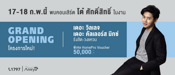 โปรโมชั่น: 17 - 18 กุมภาพันธ์ 2561 นี้ พบคอนเสิร์ต โต๋ ศักดิ์สิทธิ์ ในงาน Grand Openning โครงการใหม่ เดอะ วิลเลจ รังสิต - วงแหวน, เดอะ คัลเลอร์ส มิกซ์ รังสิต - วงแหวน พิเศษ HomePro Voucher 50,000 บาท
