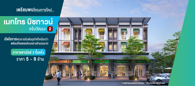 บริษัท พร็อพเพอร์ตี้ เพอร์เฟค จำกัด (มหาชน) เตรียมโครงการใหม่ เมทโทร บิซทาวน์ แจ้งวัฒนะ 2 อาคารพาณิชย์ ดีไซน์ทันสมัย ศูนย์กลางธุรกิจแห่งใหม่ ที่สุดแห่งทำเลคุณภาพ ราคา 5 - 9 ล้าน*