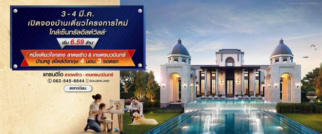 โกลเด้นแลนด์ เปิดให้จองบ้านเดี่ยว โครงการใหม่! "แกรนดิโอ ลาดพร้าว - เกษตรนวมินทร์ (Grandio Ladprao - Kaset nawamin)" 3 - 4 มี.ค.นี้ เปิดจองบ้านเดี่ยวหรูสไตล์อังกฤษ หนึ่งเดียวใจกลางลาดพร้าว&เกษตรนวมินทร์ ใกล้เซ็นทรัลอีสต์วิลล์ มาพร้อมฟังก์ชั่น 4 ห้องนอน 3 ที่จอดรถ อลังการสโมสรและสวนสวยรอบโครงการ ท่านที่สนใจสามารถลงทะเบียนรับส่วนลดเพิ่ม 100,000 บาท* ได้ที่เว็บไซต์ของโกลเด้นแลนด์