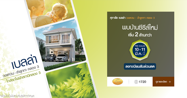 "ศุภาลัย เบลล่า วงแหวน - ลำลูกกา คลอง 3" Pre-sales 10-11 มี.ค. เริ่ม 2 ล้านกว่าบาท