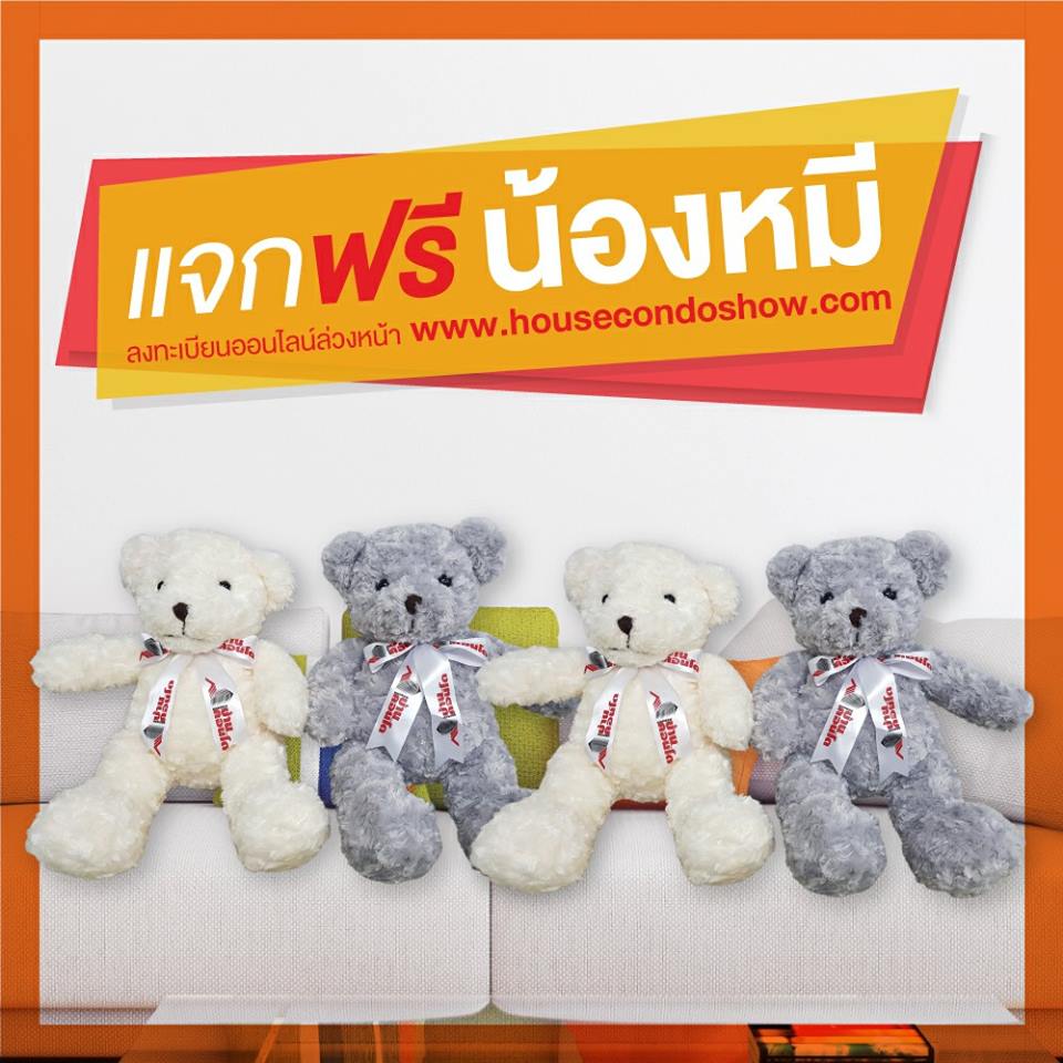 เพียง 3 ขั้นตอนง่ายๆ ก็มีสิทธิ์รับ น้องหมี น่ารักๆ กลับบ้าน จากงานมหกรรมบ้านและคอนโด ครั้งที่ 38 ฟรี จำนวน 100 ตัว โดยผู้ร่วมกิจกรรมสามารถแสดงหลักฐานยืนยันเพื่อรับของรางวัลที่บูธกิจกรรม บริเวณหน้าเวทีกลาง ตั้งแต่วันที่ 15 - 18 มี.ค. 61 ณ ศูนย์การประชุมแห่งชาติสิริกิติ์ สามารถร่วมสนุกกิจกรรมตั้งแต่วันนี้ถึงวันที่ 14 มี.ค. 61