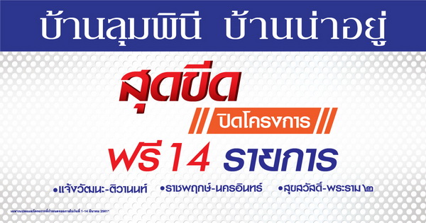 โปรโมชั่น: บ้านลุมพินี บ้านน่าอยู่ คุ้มสุดๆ คุ้มกว่านี้ไม่มีอีกแล้ว กับโปรฯ ปิดโครงการ ฟรี 14 รายการ สำหรับ บ้านลุมพินี ทาวน์วิลล์ 3 โครงการ 3 ทำเล แจ้งวัฒนะ - ติวานนท์, ราชพฤกษ์ - นครอินทร์, สุขสวัสดิ์ - พระราม ๒