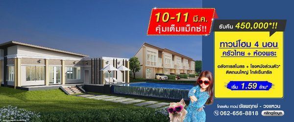 โปรโมชั่น: หูววว!!! 2 วันเท่านั้น 10 - 11 มีนาคม พบบ้านเดี่ยว ทาวน์โฮม บนทำเลที่ดีที่สุดทั่วกรุงเทพฯ ลดสูงสุด 2 ล้าน* เริ่ม 2.59 - 18 ล้านบาท ลงทะเบียนรับสิทธิพิเศษที่นี่*