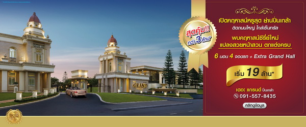 โปรโมชั่น: "เดอะ แกรนด์ ปิ่นเกล้า" มาแรง! แซงทางโค้ง เปิดคฤหาสน์สุดหรูย่านปิ่นเกล้า ติดถนนใหญ่ ใกล้เซ็นทรัล พบคฤหาสน์ซีรี่ย์ใหม่ แปลงสวยหน้าสวน ตกแต่งครบ มาพร้อมฟังก์ชัน 6 ห้องนอน 4 ที่จอดรถ+Extra Grand Hall พิเศษ... สุดคุ้มกว่า 3 ล้าน* เริ่ม 19 ล้าน*