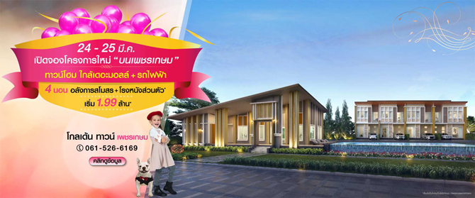 เปิดจอง "โกลเด้น ทาวน์ เพชรเกษม (Golden Town Phetkasem)" ทาวน์โฮม โครงการใหม่! จาก โกลเด้นแลนด์ 24-25 มีนาคม 2561 นี้ ชาวเพชรเกษมไม่ควรพลาด!! เตรียมพบ ทาวน์โฮม โครงการใหม่ บนทำเลศักยภาพ ใกล้เดอะมอลล์+รถไฟฟ้า กับทาวน์โฮม 4 ห้องนอน 3 ห้องน้ำ อลังการสโมสร+โรงหนังส่วนตัว พิเศษฟังก์ชันห้องพระ+ครัวไทย ท่านที่สนใจสามารถลงทะเบียนรับส่วนลดเพิ่ม 10,000 บาท* ได้ที่เว็บไซต์ของโกลเด้นแลนด์
