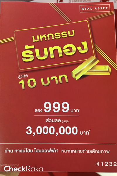 REAL ASSET ขนโครงการเข้าร่วมงานในครั้งนี้กว่า 10 โครงการ พบกับโปรโมชั่น มหกรรมรับทองสูงสุด 10 บาท "จอง 999 บาท รับส่วนลดสูงสุด 3 ล้านบาท"