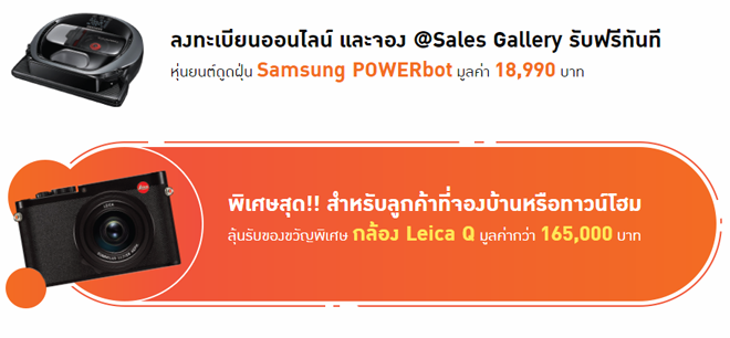 - พิเศษสุด!! สำหรับลูกค้าที่จองบ้านหรือทาวน์โฮม ลุ้นรับของขวัญพิเศษ กล้อง Leica Q มูลค่ากว่า 165,000 บาท