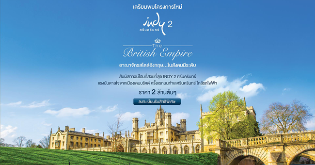 บริษัท แลนด์ แอนด์ เฮ้าส์ จำกัด (มหาชน) เตรียมเปิดตัวบ้านโครงการใหม่ "อินดี้ 2 ศรีนครินทร์ (Indy 2 Srinakarin)" อาณาจักรสไตล์อังกฤษ ในสังคมมีระดับ สัมผัสทาวน์โฮมที่สวยที่สุด แรงบันดาลใจจากเมืองแคมบริดจ์ ครั้งแรกบนทำเลศรีนครินทร์ ใกล้รถไฟฟ้า ลงทะเบียนรับสิทธิพิเศษที่นี่