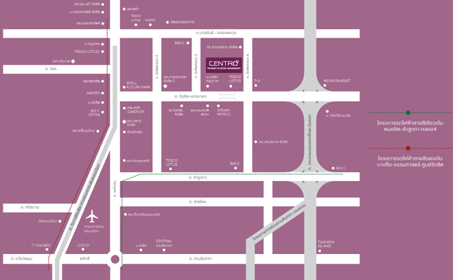 แผนที่โครงการ เซนโทร รังสิตคลอง 4 - วงแหวน