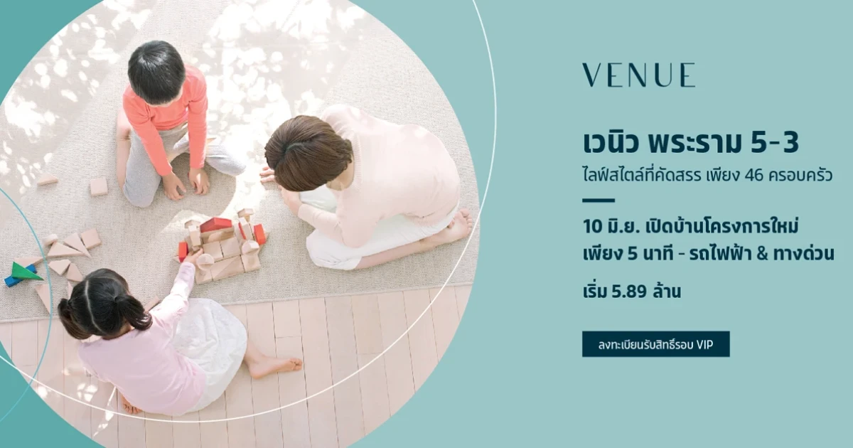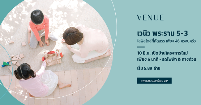 บริษัท เอสซี แอสเสท คอร์ปอเรชั่น จำกัด (มหาชน) เตรียมเปิดตัวบ้านโครงการใหม่ "เวนิว พระราม 5 - 3 (Venue Rama 5-3)" ทำเลเดินทางสะดวก เพียง 5 นาที ถึงรถไฟฟ้าและทางด่วน เอกสิทธิ์ของไลฟ์สไตล์ที่คัดสรรไว้ให้เพียง 46 ครอบครัวเท่านั้น พบกัน 10 มิถุนายน 2561 นี้ สำหรับท่านใดที่สนใจสามารถลงทะเบียนรับสิทธิ์รอบ VIP ก่อนใคร ได้ที่ลิงก์ด้านล่าง