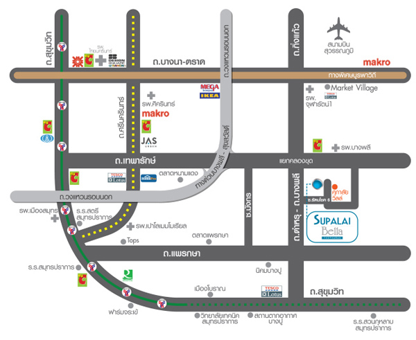 "ศุภาลัย เบลล่า เทพารักษ์ Supalai Bella Theparak" บ้านเดี่ยวและบ้านรุ่นใหม่ดีไซน์ล่าสุด ออกแบบให้พื้นที่ทุกตารางเมตร ใช้ประโยชนได้อย่างเต็มที่ พร้อมให้ความเป็นส่วนตัวในการอยู่อาศัยเพียง 74 ครอบครัวเท่านั้น แวดล้อมด้วยสิ่งอำนวยความสะดวกครบครัน อาทิ บิ๊กซี บางพลี, Market Village สุวรรณภูมิ, โลตัส, แมคโคร, เมกาบางนา, อิเกีย, โรงพยาบาลบางพลี, และสนามบินสุวรรณภูมิ