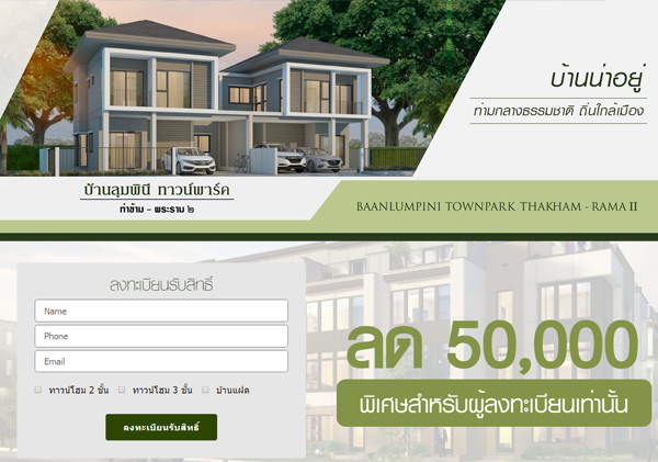 โปรโมชั่น: บ้านลุมพินี ทาวน์พาร์ค ท่าข้าม - พระราม 2 โครงการใหม่จาก LPN เปิดให้ลงทะเบียนรับส่วนลด 50,000 บาท ราคาเริ่มต้น 2.5 ล้านบาท