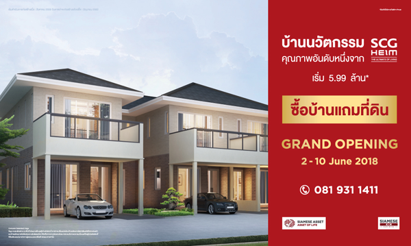 โปรโมชั่น: ไซมิส คิน รามอินทรา บ้านนวัตกรรม คุณภาพอันดับ 1 SCG HEIM ซื้อบ้านแถมที่ดิน Grand Opening 2 - 10 มิถุนายน 2561 เริ่ม 5.99 ล้านบาท*