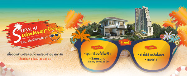 โปรโมชั่น: Supalai Summer Choice *โปร...เลือกได้ตามใจคุณ เมื่อจองบ้านหรือคอนโดฯ พร้อมเข้าอยู่ ตั้งแต่ 1 เมษายน - 30 มิถุนายน 2561