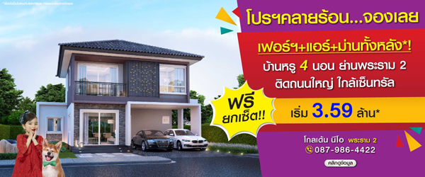 โปรโมชั่น: โกลเด้น นีโอ พระราม 2 โปรฯ คลายร้อน!! จองเลย ฟรียกเซ็ต! เฟอร์ฯ+แอร์+ม่านทั้งหลัง* บ้านหรู 4 ห้องนอน 2 ที่จอดรถ พร้อมสระว่ายน้ำขนาดใหญ่และสวนธรรมชาติ ติดถนนใหญ่ ใกล้เซ็นทรัล เริ่ม 3.59 ล้าน*