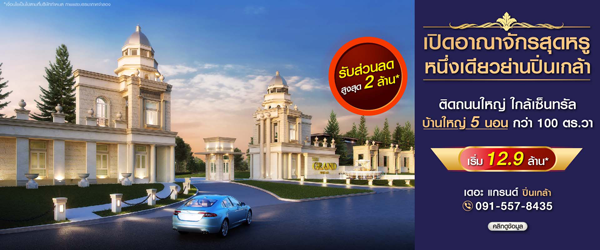 โปรโมชั่น: เดอะ แกรนด์ ปิ่นเกล้า เปิดอาณาจักรสุดหรู หนึ่งเดียวย่านปิ่นเกล้า! ติดถนนใหญ่ ใกล้เซ็นทรัล กับบ้านใหญ่ 5 ห้องนอน กว่า 100 ตร.ว. พร้อมสโมสรสุดหรูและฟิตเนส พิเศษ! จองเลย รับส่วนลดสูงสุด 2 ล้าน*!! เริ่ม 12.9 ล้าน*