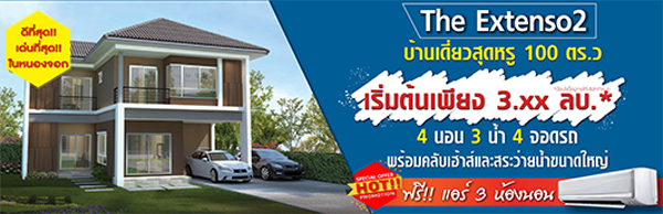 โปรโมชั่น: THE EXTENSO 2 New Series บ้านเดี่ยวสุดหรู 100 ตร.ว ราคาเริ่มต้นเพียง 3.xx ลบ.* 4 ห้องนอน 4 ที่จอดรถ พร้อมคลับเฮ้าส์และสระว่ายน้ำขนาดใหญ่ จองวันนี้รับทันที ฟรี!! แอร์ 3 ห้องนอน
