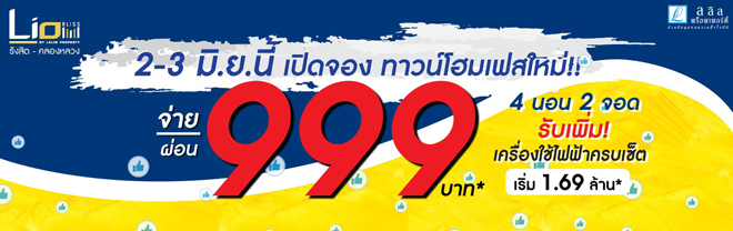 ไลโอ บลิสซ์ รังสิต - คลองหลวง (Lio BLISS) เปิดจอง ทาวน์โฮมเฟสใหม่ 2-3 มิถุนายนนี้ ผ่อน 999 บาท*
