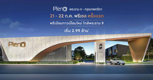 บริษัท เอพี (ไทยแลนด์) จำกัด (มหาชน) เตรียมเปิดตัวทาวน์โฮมโครงการใหม่ "พลีโน่ พระราม 9 - กรุงเทพกรีฑา (Pleno Rama 9 - Krungthepkritha)" โครงการทาวน์โฮม 2 ชั้น ใหม่ล่าสุด บนทำเลศักยภาพย่านพระราม 9 เปิด Pre-sale ครั้งแรกวันที่ 21 - 22 กรกฎาคม 2561 นี้ 2 วันเท่านั้น จอง 9,999 บาท* ลงทะเบียนรับส่วนลด 10,000 บาท* ได้ที่ลิงก์ด้านล่าง