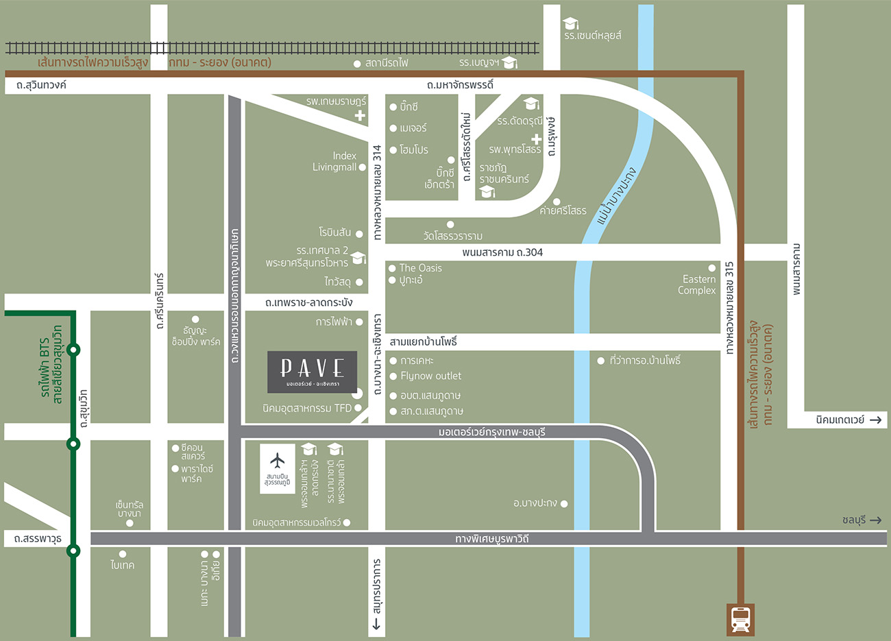 โครงการตั้งอยู่ตำบลแสนภูดาษ อำเภอบ้านโพธิ์ จังหวัดฉะเชิงเทรา ใกล้ทางด่วนฯ มอเตอร์เวย์ชลบุรี และแหล่งอำนวยความสะดวก อาทิ Robinson, Major Ciniplex, MEGA, IKEA, โรงพยาบาลเกษมราษฏ์ ฉะเชิงเทรา และยังมีโครงการรถไฟความเร็วสูงเชื่อม 3 สนามบิน รองรับในอนาคต