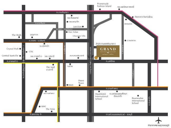 - สะดวกเดินทางด้วยรถไฟฟ้าสายสีชมพู และสีส้ม