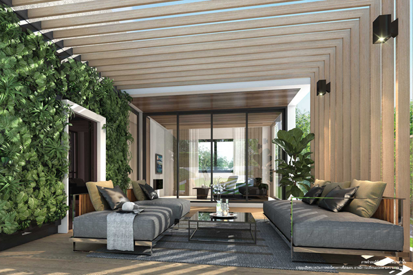 4. The Pavilion Villa - พื้นที่ใช้สอยประมาณ 490 ตร.ม. (ไม่รวมส่วน pavilion ) ที่ดินเริ่มต้น 100 ตร.ว. 4 ห้องนอน 6 ห้องน้ำ 3 ที่จอดรถ ห้องรับประทานอาหาร / ห้องรับแขก/ห้องพระ / ลานอเนกประสงค์ / ครัวไทย/ส่วนเตรียมอาหาร /ห้องพักผ่อน/ห้องแม่บ้าน/ลิฟท์ / สระว่ายน้ำส่วนตัว / Pavilion