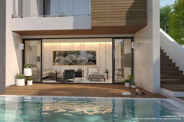 - สระว่ายน้ำภายในบ้าน ช่วยให้คุณได้พักผ่อนราวกับได้ไปเที่ยว (เฉพาะแบบบ้าน The Pool Villa และThe Pavilion Villa)