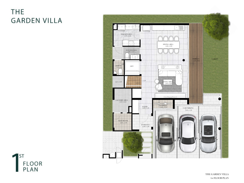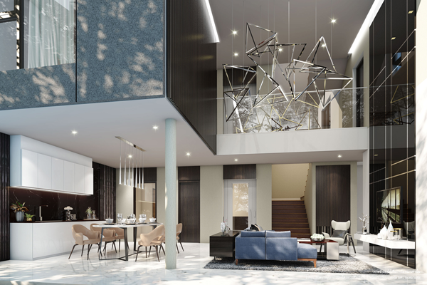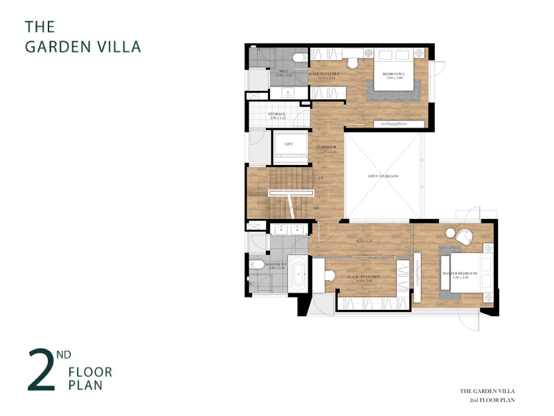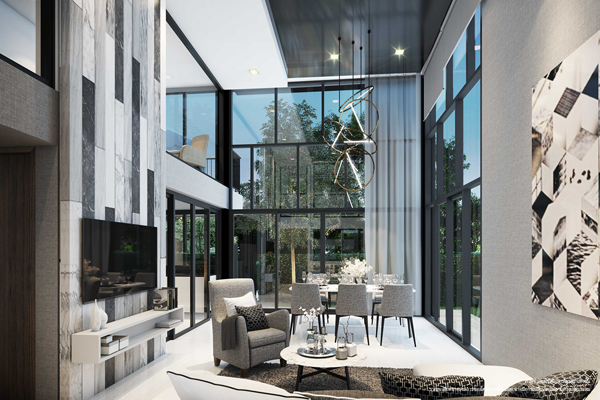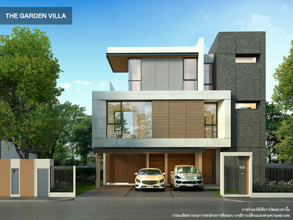 2. The Garden Villa - พื้นที่ใช้สอยประมาณ 340 ตร.ม. ที่ดินเริ่มต้น 56 ตร.ว. 4 ห้องนอน 5 ห้องน้ำ 3 ที่จอดรถ 1 ห้องอเนกประสงค์ ห้องรับแขก / ห้องรับประทานอาหาร / ครัวไทย / ส่วนเตรียมอาหาร / ห้องพระ / ห้องแม่บ้าน / ลิฟท์ ราคาเริ่มต้น 35 ล้านบาท