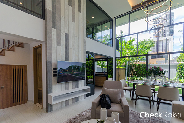 ส่วนทาวน์โฮม 4 ชั้นครึ่ง มีจำนวน 58 หลัง ราคาเริ่มต้น 18 ล้านบาท บนที่ดิน 26 ตร.ว พื้นที่ใช้สอย 310-320 ตร.ม. ตอบโจทย์ความต้องการของผู้อยู่อาศัยได้อย่างสมบูรณ์แบบ ด้วยการจัดวางผังให้แต่ละยูนิตสลับหน้า-หลังกันเพื่อความเป็นส่วนตัวของผู้อยู่อาศัย ขณะเดียวกัน ภายในโครงการยังมีคลับเฮ้าส์ที่โดดเด่นทางสถาปัตยกรรม สะท้อนเอกลักษณ์ความเป็นไทยผ่านวัสดุเซรามิก ผสมผสานแนวคิด Functionalism เหมาะสำหรับชีวิตทุกสไตล์ทั้ง Slow Life และ Fast Move บริเวณโดยรอบรายล้อมด้วยพื้นที่สีเขียว พร้อมโอโซนธรรมชาติที่หาได้ยากขึ้นในปัจจุบัน